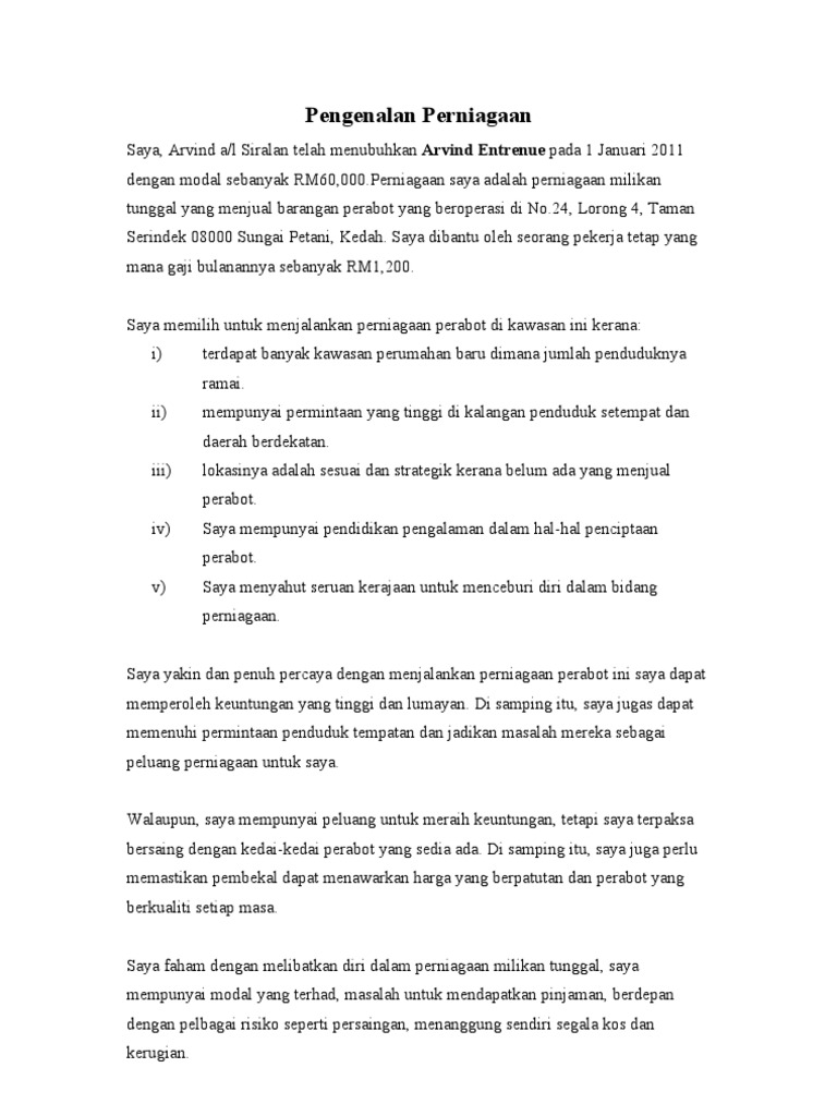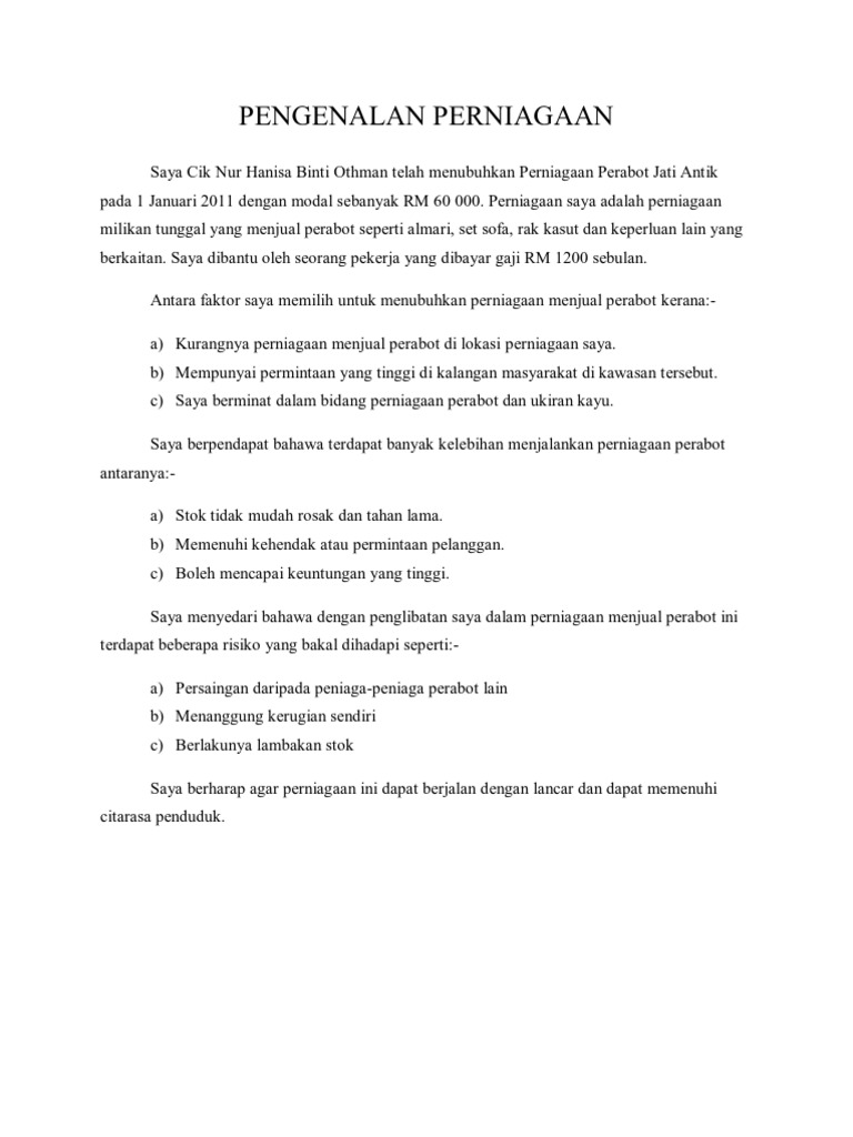 Doc Pengenalan Perniagaan Mohd Hanafi Ali Academia Edu