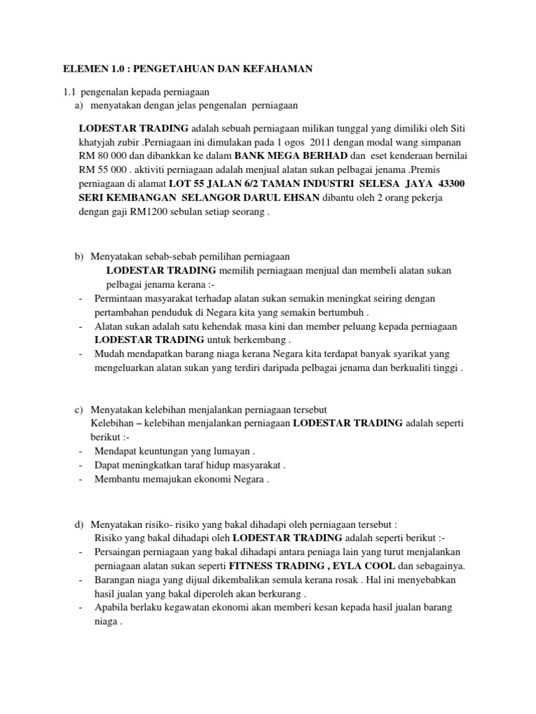 Francais Satu bentuk perniagaan di mana francaisor memberi kebenaran hak atau keistimewaan seperti nama perniagaan dan cop dagangan kepada individu atau syarikat tertentu francaisi untuk menjalankan perniagaan mengikut peraturan dan tatacara yang telah ditetapkan oleh francaisor. Masyarakat Melayu menjalankan kegiatan ekonomi sara diri dan pertanian tradisional seperti menanam padi manangkap ikan dan mengutip hasil hutan. View flipping ebook version of NOTA PERNIAGAAN TINGKATAN 4 published by mazieyahmaz on 2020-04-16.